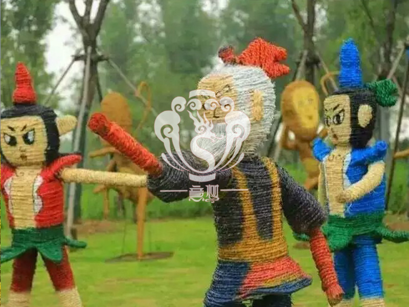 現(xiàn)在的精致稻草人藝術(shù)通常是由專(zhuān)業(yè)美術(shù)老師的造型放樣,然后由焊工師傅焊接出立體造型造型,然后以稻草或者稻草繩為材料編捆制作而成。
