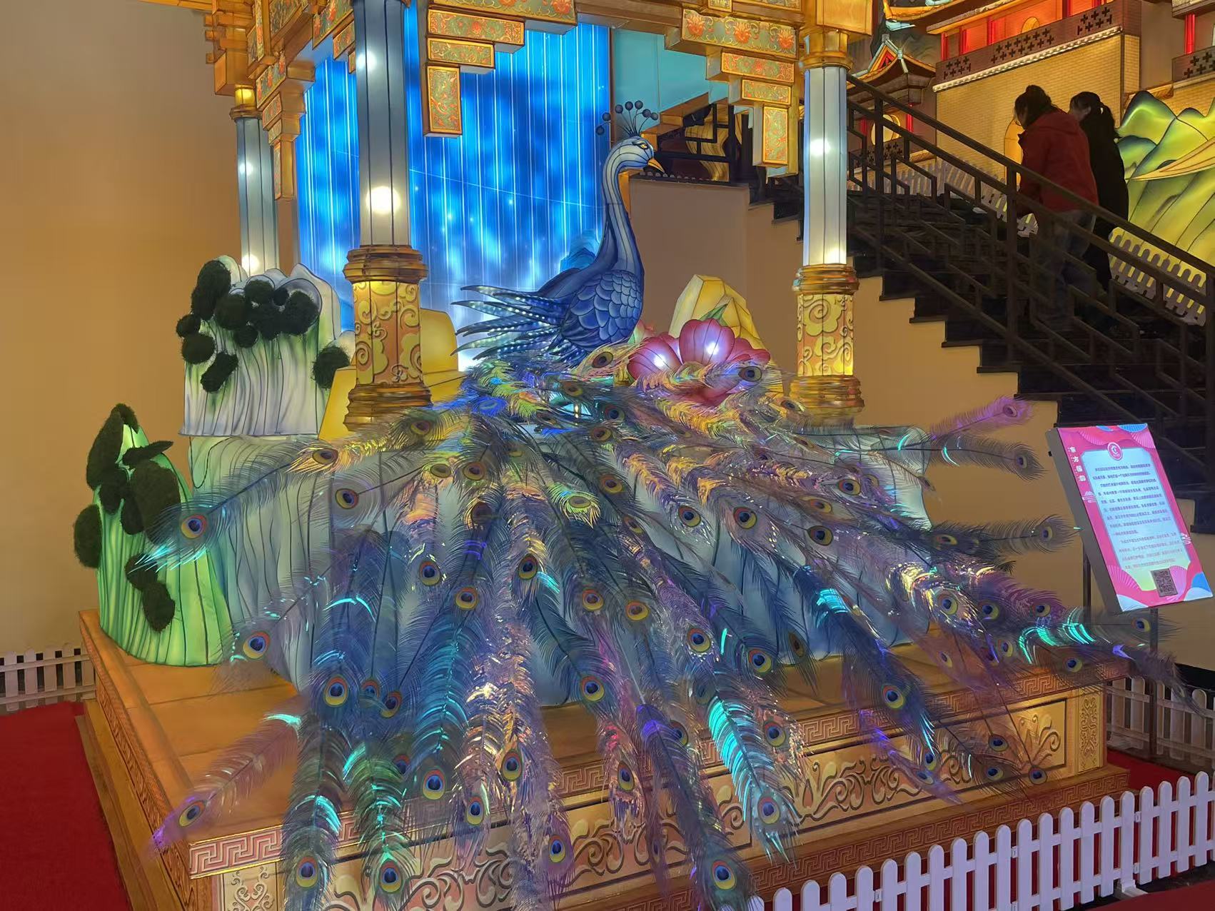 自貢彩燈素有 “天下第一燈” 美譽,其工藝歷經(jīng)千年淬煉,從漢代井鹽開采時期的雛形,到明清 “獅燈場市” 的興盛,如今已發(fā)展出立體絲扎、分色裱糊、瓷器捆扎等數(shù)十種核心技法。意樹文化團隊深諳此道,在創(chuàng)作中既堅守 “美工放樣、鉗工造型、焊工固定、裱糊上色” 的傳統(tǒng)工序,又融入 LED 節(jié)能光源、AI 互動等現(xiàn)代科技,更創(chuàng)新性運用特色材料,讓每盞花燈都成為技藝傳承的載體。如工匠們將以 45 度角精準(zhǔn)裁切按紋理緊密粘制成孔雀翎羽,燈光透過的天然紋路,盡顯生靈的靈動質(zhì)感。
