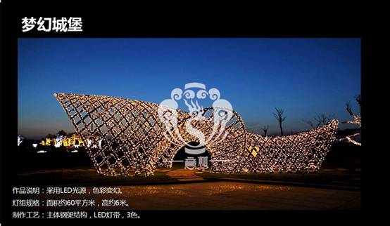 走進(jìn)現(xiàn)場(chǎng)看到3000萬(wàn)盞璀璨寶石般的彩燈把棋盤山裝點(diǎn)成一個(gè)夢(mèng)幻世界。炫目迷人的“時(shí)光隧道”,猶如夢(mèng)開始的地方,穿越隧道闖進(jìn)奇幻的迷霧森林,夢(mèng)幻旅程由此悄然開始……高達(dá)6米的夢(mèng)的翅膀,山頂皚皚白雪凸顯著圣潔,乘風(fēng)破浪的愛情號(hào),快帶著他(她)駛進(jìn)愛的海洋;灰姑娘的水晶鞋,震撼的燈海等20多種造型,那一望無(wú)際的燈海仿佛寬廣的海洋溫柔的擁抱你我……